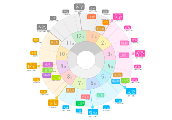 日本には「二十四節気」というものがございまして、1年365日を24個に分けた季節の区切りがあるそうでございます。