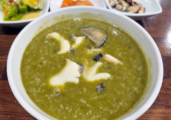肝のコクがしっかり効いた「本物の色」をしたアワビ粥専門店「済州家」。