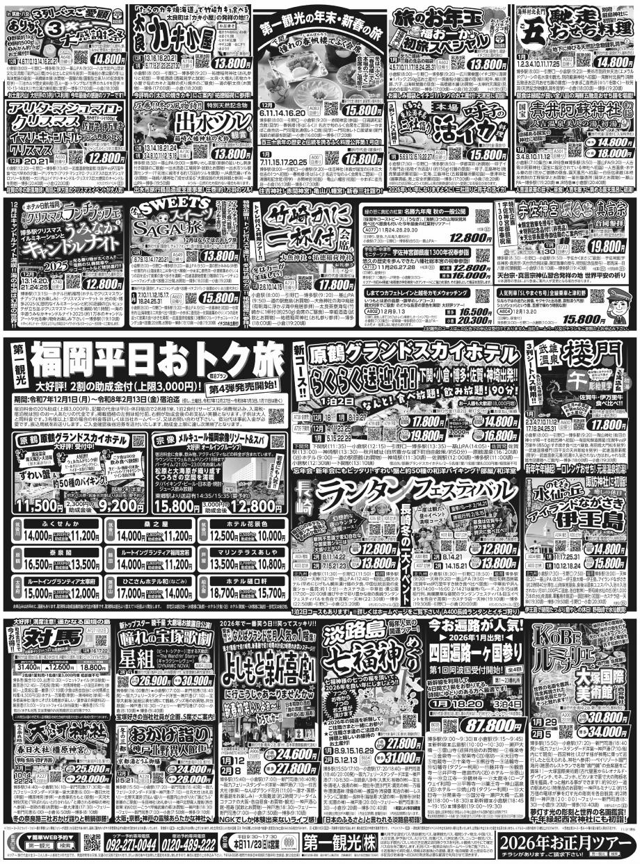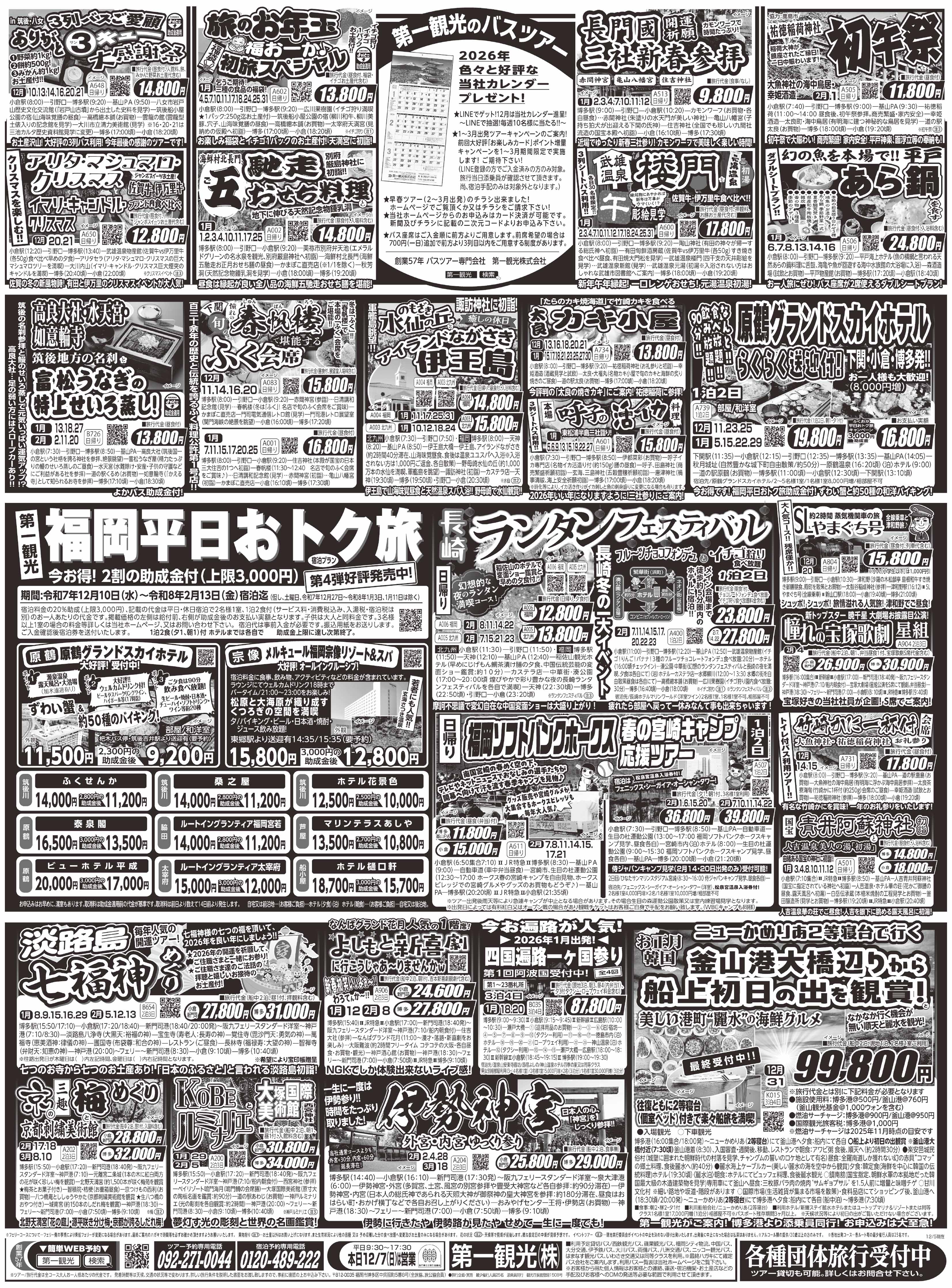 | [A648] 【福岡県助成金付】3つのお土産付♪ 3列バスご愛顧ありがと❸サンキュー歳末大感謝祭 in 筑後・八女 |