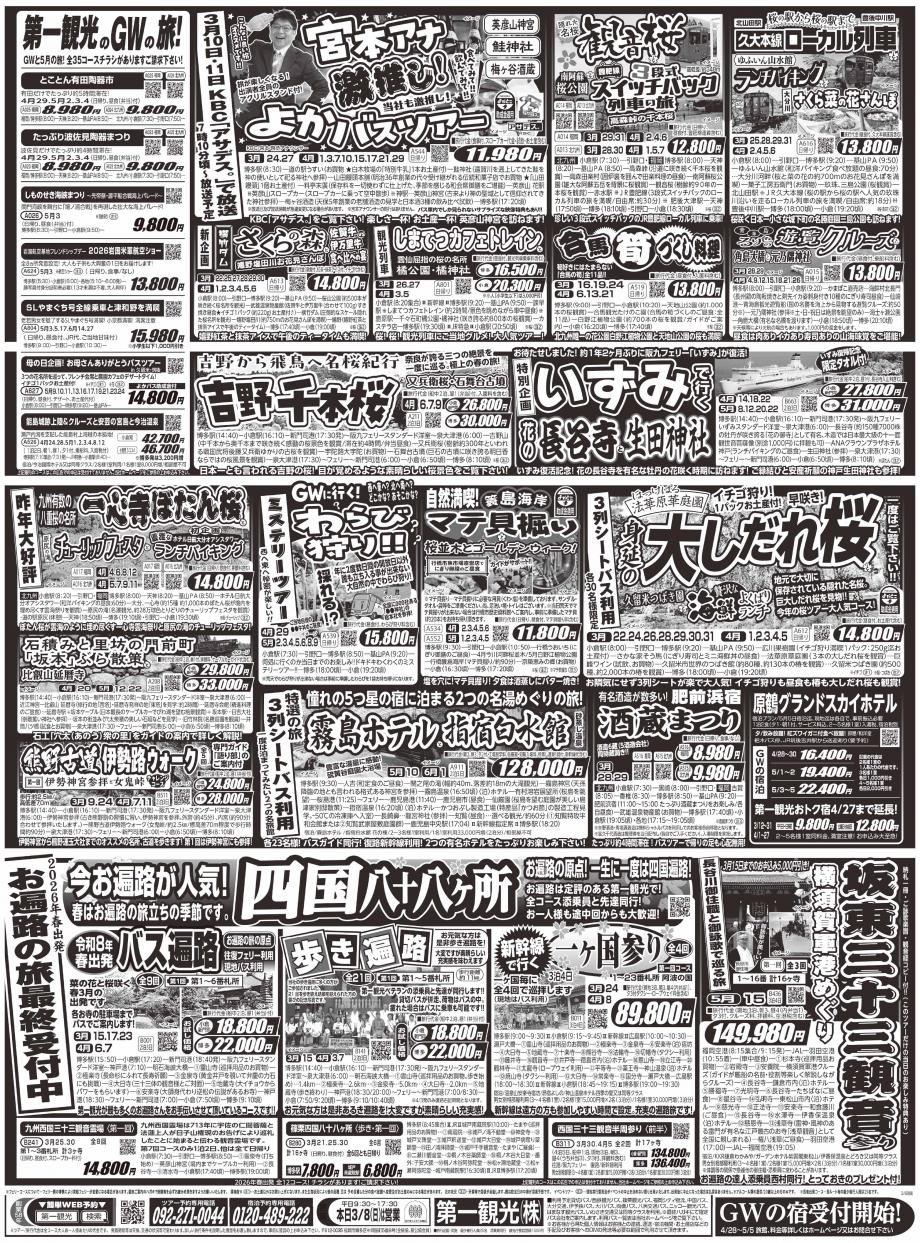 新聞広告に掲載された第一観光イチオシの旅をご紹介。最新のツアー情報、旬の旅行プランも新聞広告なら漏れなくチェックできます。